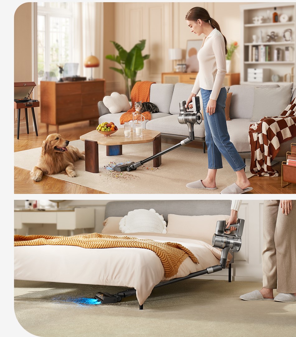 Пылесос Dreame R20 - новинка со специальной синей подсветкой для обнаружения пыли. Интеллектуальные датчики и высокая мощность всасывания гарантируют принципиально новый уровень уборки.
