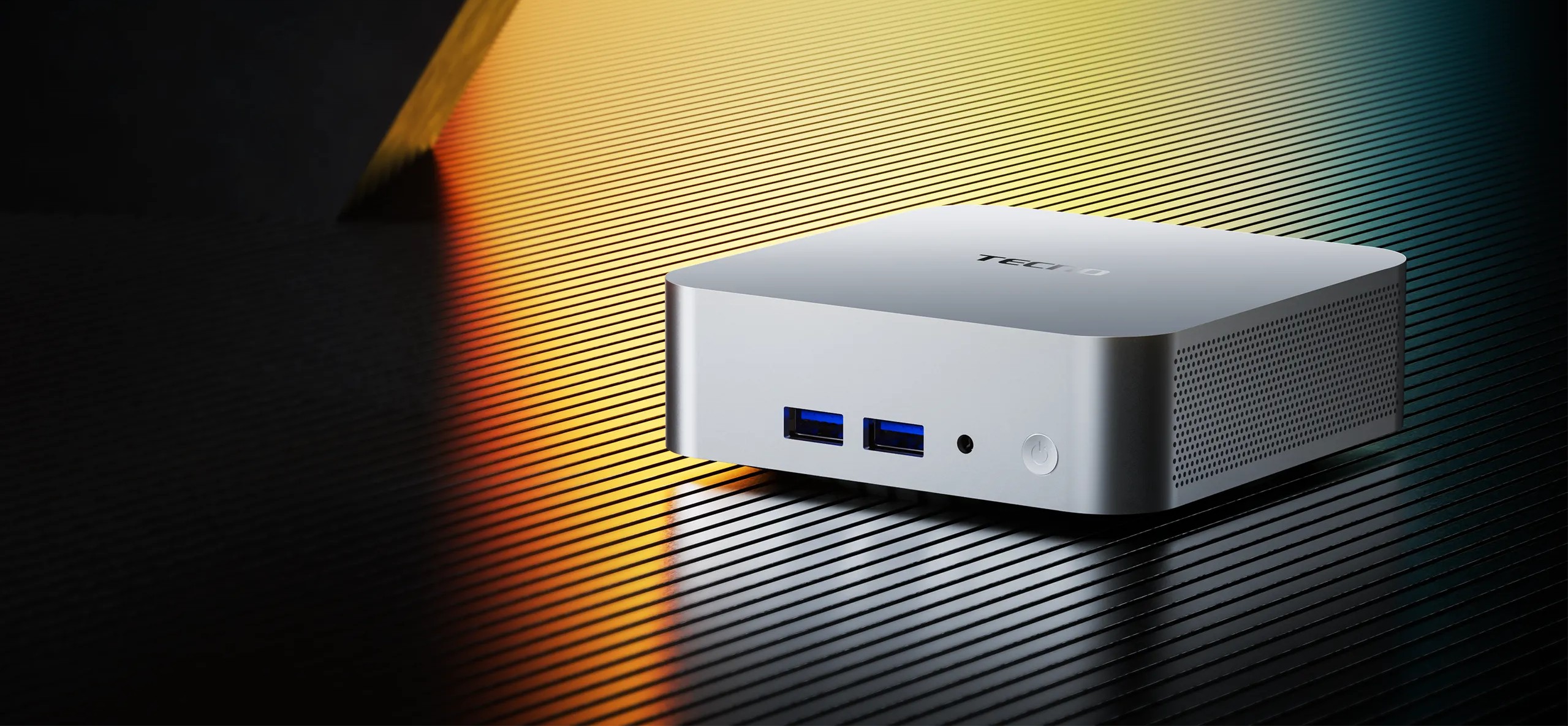 Tecno Mega Mini M1 выполнен в компактном алюминиевом корпусе с аккуратной матовой отделкой. Форм-фактор рассчитан на размещение прямо на рабочем столе или за монитором, при этом устройство занимает минимум места. Габариты 112 × 112 × 37 мм и вес 410 г делают мини-ПК удобным для мобильного рабочего пространства, домашнего офиса или переговорной.