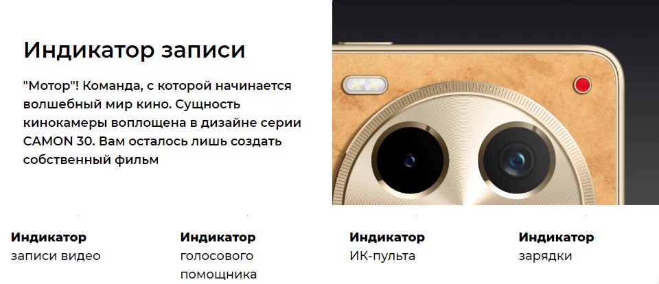 Образ классической фотокамеры стал основой дизайна всей серии CAMON 30. В сочетании с тонким и легким корпусом обновленная линейка камерофонов TECNO стала настоящей иконой стиля