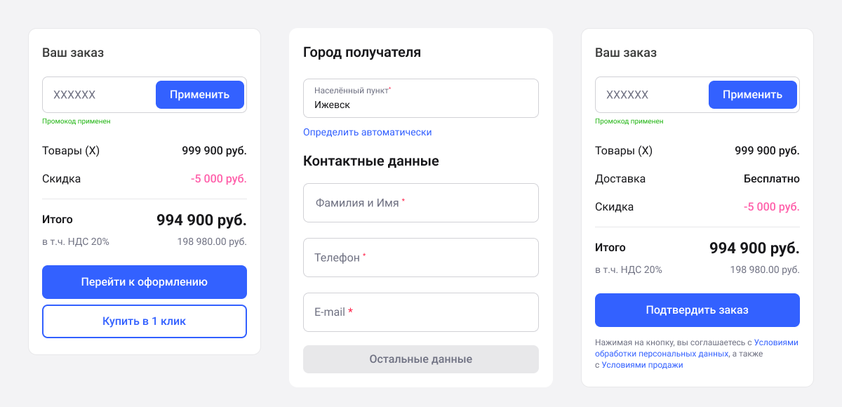 Продолжите оформление заказа. Для этого нажмите на кнопку «Перейти к оформлению» и заполните все необходимые поля. Для оформления заказа нужно ввести ваши контактные данные, номер телефона и выбрать способ получения товара.